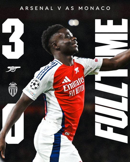 Βήμα πρόκρισης μέσω της πρώτης οχτάδας για την Άρσεναλ η οποία με απόλυτο πρωταγωνιστή τον Μπουκάγιο Σάκα κέρδισε 3-0 τη Μονακό. Σπουδαίες ευκαιρίες στην επανάληψη για τους φιλοξενούμενους. Επόμενη αγωνιστική πλέον το διήμερο 21-22/1 με την Άρσεναλ να πάει στο Ζάγκεμπ και η Μονακό να παίζει με την Ίντερ.