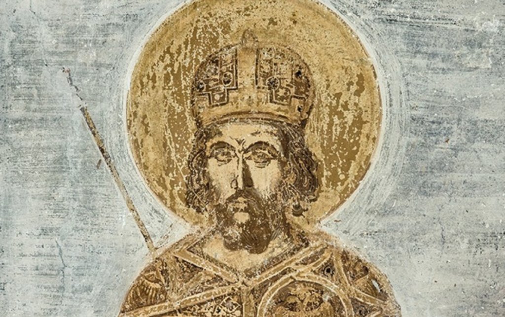 Ο αυτοκράτορας που απεικονίζεται είναι ιστορικό πρόσωπο και ταυτίζεται με τον Κωνσταντίνο ΙΑ' Παλαιολόγο, αδελφό των χορηγών της ανακαίνισης της Μονής, των δεσποτών Δημήτριου και Θωμά. Είναι η τελευταία χρονολογικά σωζόμενη προσωπογραφία αυτοκράτορα στη βυζαντινή μνημειακή ζωγραφική και το μοναδικό πορτρέτο του Κωνσταντίνου Παλαιολόγου, σύγχρονο με τη σύντομη βασιλεία του (6 Ιανουαρίου 1449 - 29 Μαΐου 1453).
