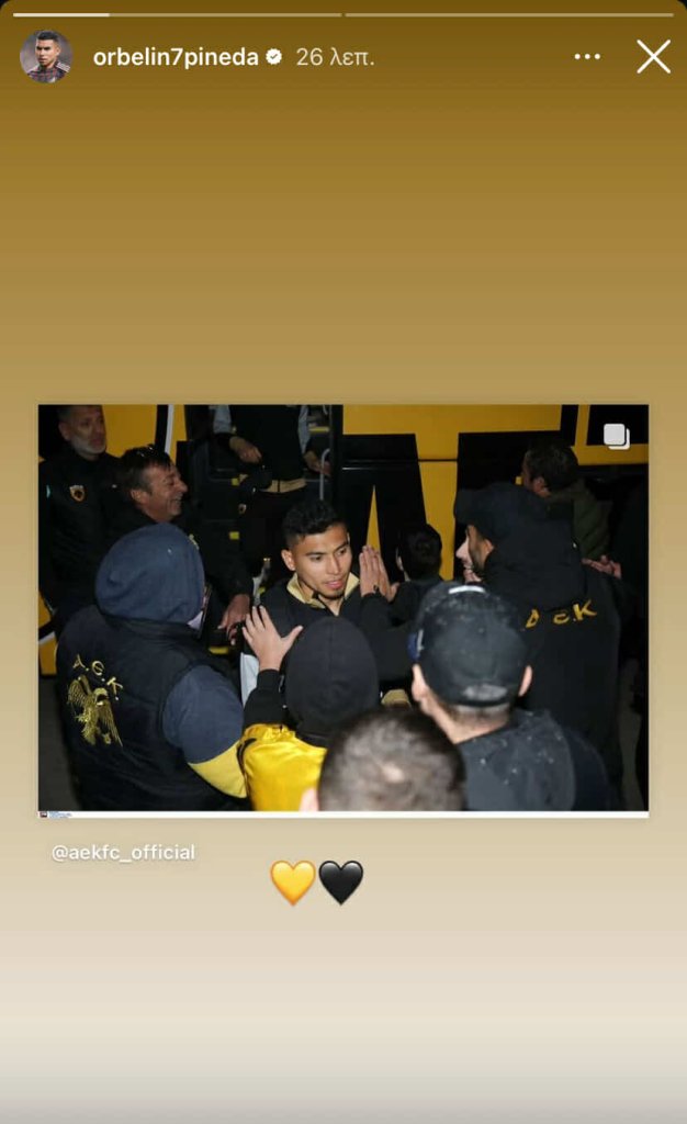 Η ΑΕΚ αποθεώθηκε κατά την άφιξη της στη Λαμία και ο Ορμπελίν Πινέδα πόσταρε φωτογραφία στο instagram από την αποθέωση που γνώρισε η κιτρινόμαυρη αποστολή. Μάλιστα, ο Μεξικανός ανέβασε κιτρινόμαυρες καρδιές επιστρέφοντας την αγάπη που του έδειξαν οι Ενωσίτες!