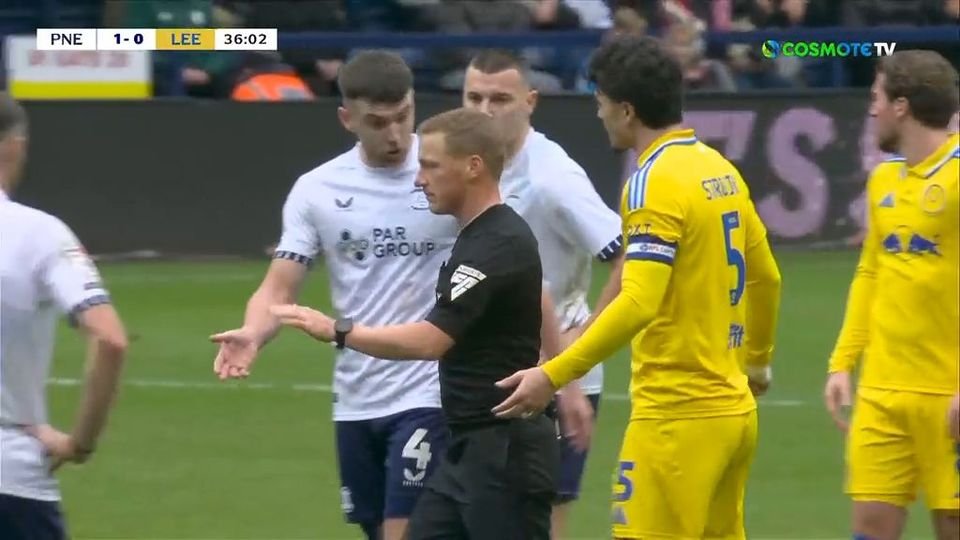 Στο 36ο λεπτό του Πρέστον-Λιντς, για τη Τσάμπιονσιπ, μια απόφαση του διαιτητή ξεσήκωσε θύελλα αντιδράσεων, από πλευράς φιλοξενούμενων.
