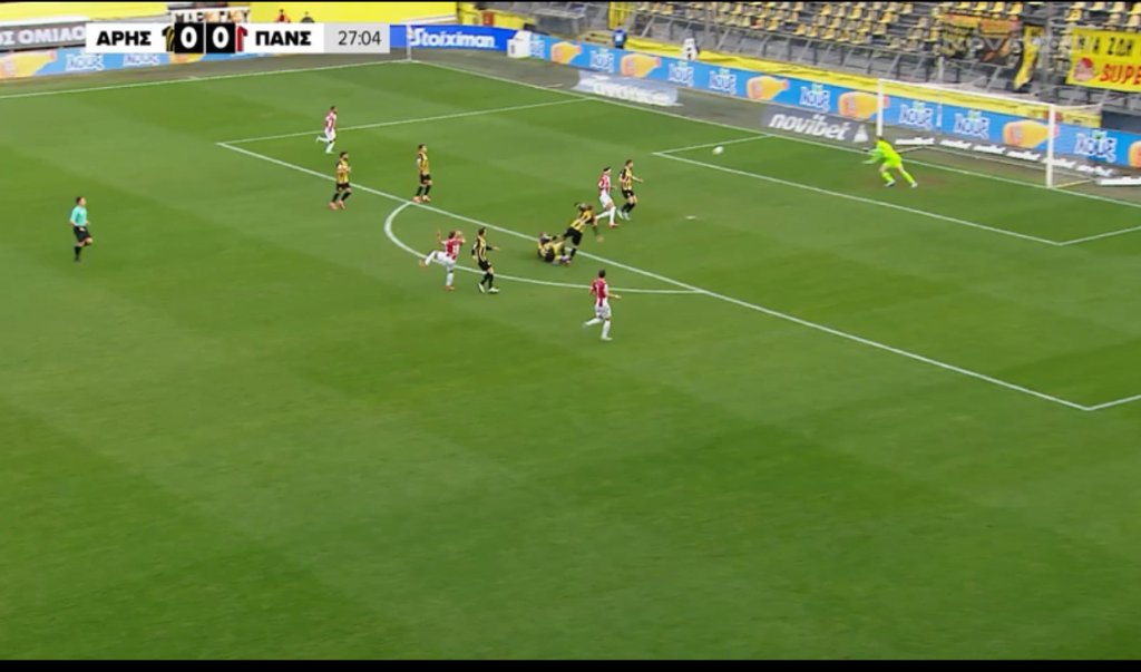 Στο 23ο λεπτό, ο Πανσερραϊκός απείλησε τον Άρη, όταν οι φιλοξενούμενοι αναπτύχθηκαν εξαιρετικά, η μπάλα έφτασε στον Χατζηστραβό, ο οποίος σούταρε, με τον Κουέστα να του λέει "όχι".