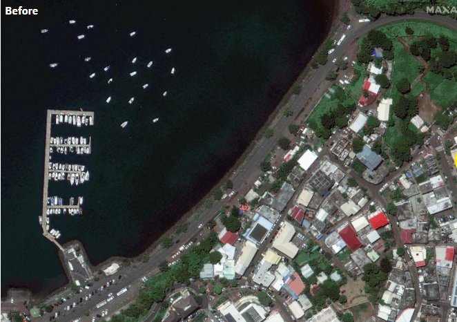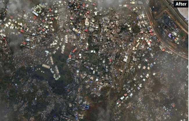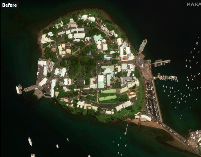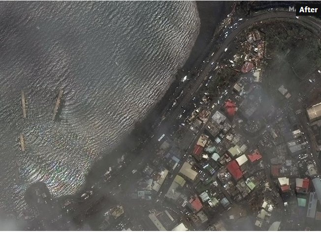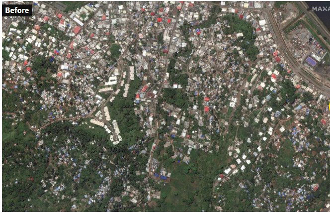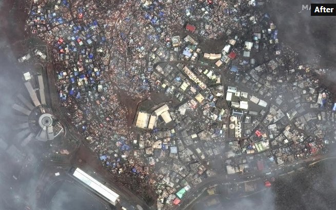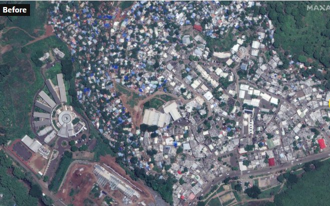 Δορυφορικές εικόνες της πρωτεύουσας που δημοσίευσε η Maxar Technologies την Τρίτη έδειξαν κατεστραμμένες στέγες, βάρκες να λείπουν από το λιμανάκι και η πυκνή βλάστηση που υπήρχε να έχει αντικατασταθεί από λάσπη και ερείπια.