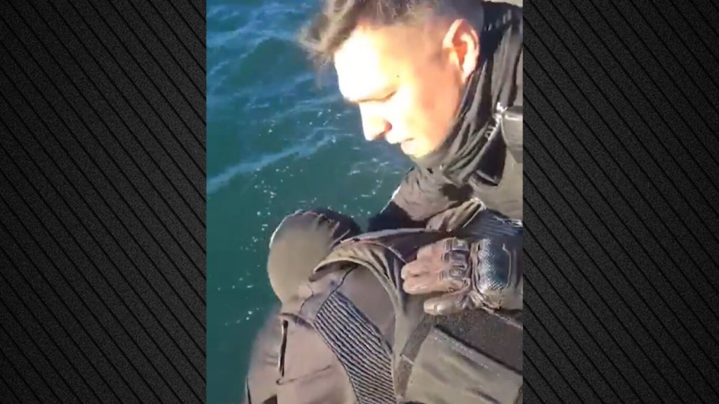 Ένας εξ αυτών στη συνέχεια έδωσε το σήμα «δώστε ένα-δύο-τρία να δώσουμε» και ο άνδρας ανασύρεται από το νερό.