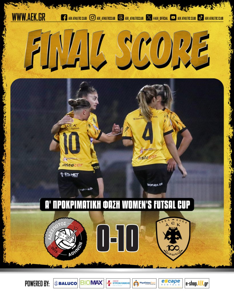 Νέα νίκη για τη γυναικεία ομάδα Futsal της ΑΕΚ, που επικράτησε εκτός έδρας με 10-0 του Αδέσποτου Αθηνών και προκρίθηκε στα Προημιτελικά του Women’s Futsal Cup. Οι «κιτρινόμαυρες» κυριάρχησαν του αντιπάλου τους και έφτασαν σε μία εύκολη επικράτηση, σημειώνοντας από 5 τέρματα σε κάθε ημίχρονο.