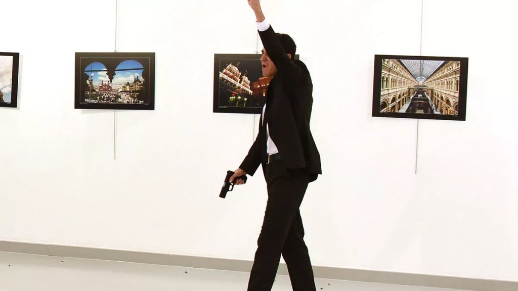στην Άγκυρα, τζιχαντιστής προσποιούμενος τον άνδρα ασφαλείας μπαίνει σε έκθεση τέχνης και δολοφονεί μπροστά στις κάμερες τον Ρώσο πρέσβη στην Τουρκία. Στη συνέχεια πέφτει νεκρός από τα πυρά των αστυνομικών.