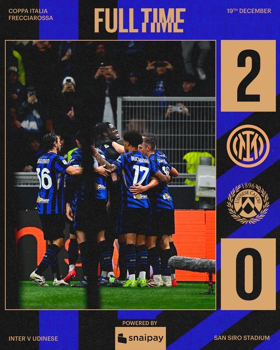 Εύκολο βράδυ είχε η Ίντερ η οποία καθάρισε με 2-0 στο Μιλάνο την Ουντινέζε. Πλέον οι Νερατζούρι θα βρουν στο διάβα τους τη Λάτσιο στην προημιτελική φάση.