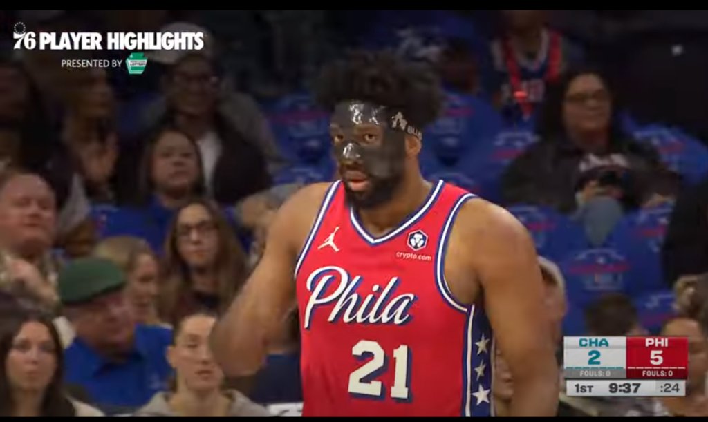 Φορώντας προστατευτική μάσκα, ο Τζόελ Εμπίντ επέστρεψε στη δράση, έβαλε 34 πόντους και πανηγύρισε νίκη, με τους Φιλαδέλφεια Σίξερς να επικρατούν 108-98 των Σάρλοτ Χόρνετς.
