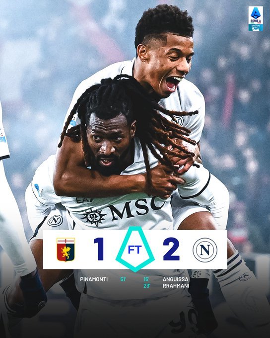 Τη νίκη με 2-1 πανηγύρισε η Νάπολι στην έδρα της Τζένοα για την 17η και τελευταία αγωνιστική της Serie A για το 2024, πάτησε κορυφή και περιμένει να δει τι θα κάνει την Κυριακή(22/12) η Αταλάντα κόντρα στην Έμπολι. Παρέμειναν στο +2 από την επικίνδυνη ζώνη οι Γενοβέζοι.