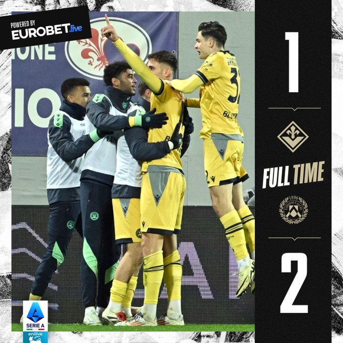 Δεύτερη σερί ήττα για τη Φιορεντίνα, που χάνει σημαντικό έδαφος στη μάχη του τίτλου. Οι «βιόλα» προηγήθηκαν κόντρα στην Ουντινέζε αλλά στο τέλος έχασαν με 2-1 μέσα στην έδρα τους, κάτι που είχε να συμβεί από τις 30 Μαρτίου!