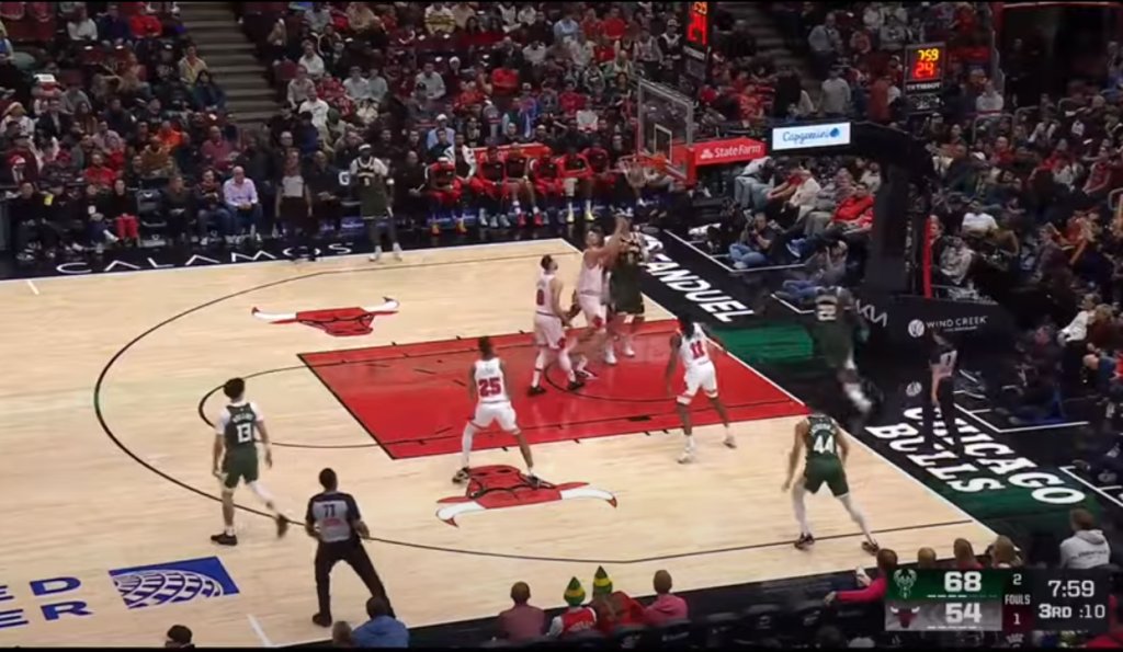 Οι Μπακς μπήκαν φουριόζοι στο παρκέ του United Center και στο 12ο λεπτό είχαν αποκτήσει προβάδισμα 16 πόντων, 17-33. Στη δεύτερη περίοδο, η διαφορά έφτασε έως και τους 23 πόντους, 34-57, με τους Μπακς να ολοκληρώνουν το πρώτο ημίχρονο, έχοντας 11/24 τρίποντα και προβάδισμα 14 πόντων, 45-59. Οι Μπουλς έβγαλαν αντίδραση, στο τρίτο 12λεπτο, και με σερί 10-0 κατάφεραν να πλησιάσουν στο σκορ, 68-76. Η απάντηση, από πλευράς Μπακς, ήταν άμεση. Με διαδοχικά τρίποντα του Τρεντ, οι φιλοξενούμενοι πέτυχαν 11 αναπάντητους πόντους, για το 68-87, στα 2:05 λεπτά για τη λήξη της περιόδου. Οι Μπακς μπήκαν στη τέταρτη περίοδο, έχοντας προβάδισμα 20 πόντων, 72-92 και θα κάνουν Καλά Χριστούγεννα, χάρη στο τελικό 91-112.