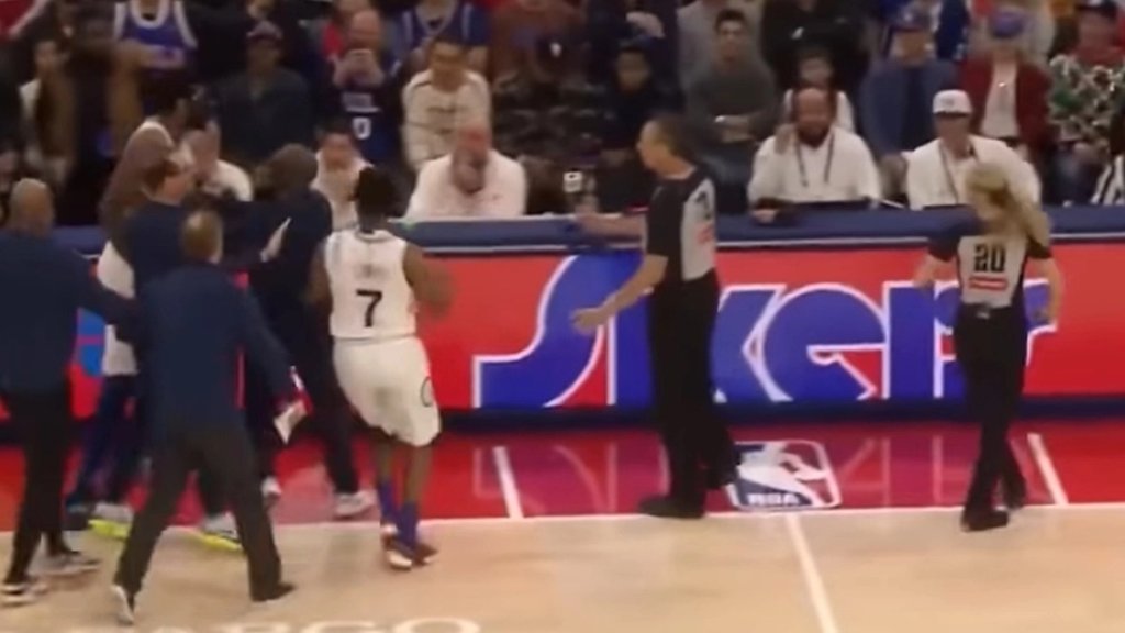 Ο σέντερ των Σίξερς, ο Τζόελ Εμπίντ, χρεώθηκε με επιθετικό φάουλ, πάνω στον Βίκτορ Γουεμπανιαμά, με τον Καμερουνέζο να γίνεται έξαλλος, και να επιτίθεται στη γυναίκα διαιτητή. Εκείνη, τον χρέωσε με τεχνική ποινή, κάτι το οποίο όπως φαίνεται και στο βίντεο, τον εξόργισε με αποτέλεσμα να ανάψουν τα αίματα. Χρειάστηκε η επέμβαση των υπόλοιπων παικτών και του τεχνικού επιτελείου ώστε τελικά ο Εμπίντ να ηρεμήσει ενώ, από την ένταση της στιγμής, έβγαλε την προστατευτική μάσκα που φοράει.