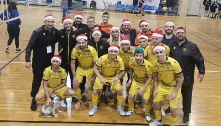 Τα κάλαντα στο γήπεδο είπαν τα παιδιά από το futsal της ΑΕΚ.