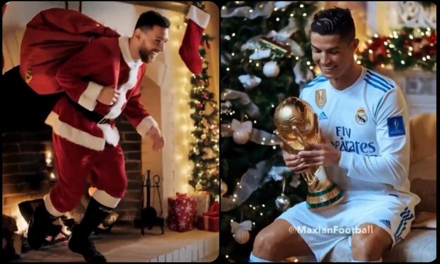 Χρονιάρες ημέρες σημαίνει ελεύθερος χρόνος για ορισμένους ανθρώπους, αφού παίρνουν άδεια από τις εργασίες τους. Κάπως έτσι και με την τεχνολογία πλέον να έχει αναπτυχθεί σε «τρομακτικά» επίπεδα, οι χρήστες του ίντερνετ… οργιάζουν. Απόδειξη ένα από τα πιο πρόσφατα βίντεο που δημιούργησε ένας φίλος του ποδοσφαίρου (και προφανώς του Μέσι) μέσω του AI. Ο εν λόγω τύπος λοιπόν είχε τρομερή έμπνευση και το αποτέλεσμα του βίντεο ήταν επικό. Ο Λιονέλ Μέσι σε ρόλο Άι Βασίλη βρίσκεται πάνω στο έλκηθρο και πηγαίνει να μοιράσει τα δώρα. Κάνει… στάση στο σπίτι του Κριστιάνο Ρονάλντο, εισβάλλοντας από την καμινάδα. Βγαίνει από το τζάκι, βλέπει τον Πορτογάλο να κοιμάται και του αφήνει κάτω από το χριστουγεννιάτικο δώρο το τρόπαιο του Παγκοσμίου Κυπέλλου που κατέκτησε ο ίδιος πριν από δύο χρόνια στο Κατάρ. Ο Κριστιάνο ξυπνά το επόμενο πρωί και γεμάτος χαρά βλέπει το… πολυπόθητο τρόπαιο και δώρο να του ανήκει πλέον. Μόνο που τελικά αντιλαμβάνεται πως είναι ένα σοκολατένιο τρόπαιο, το οποίο λιώνει στα χέρια του…