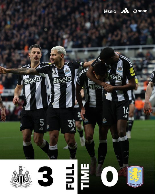 Η Νιούκαστλ επικράτησε την Άστον Βίλα με 3-0, έφτασε τις τρεις σερί νίκες και βρέθηκε στην 5η θέση με 29 βαθμούς κι έναν περισσότερο από τους «χωριάτες».