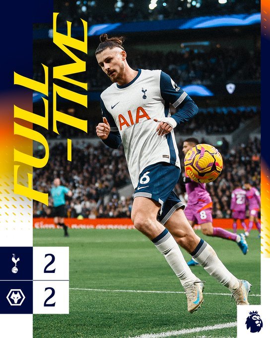Δεν σηκώνει κεφάλι η Τότεναμ, η οποία κόλλησε στο 2-2 μέσα στην έδρα της με τη Γουλβς και παραμένει πολύ πίσω.