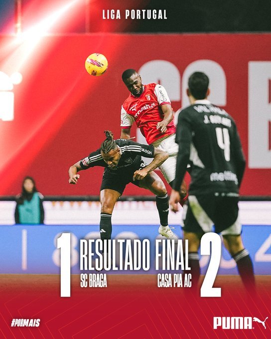Εντός έδρας ήττα σοκ για την Μπράγκα, η οποία έχασε με 2-1 από την Κάζα Πία και παρέμεινε στο -12 από την κορυφή. Δεύτερη σερί νίκη για τους φιλοξενούμενους, οι οποίοι ανέβηκαν στην 7η θέση.