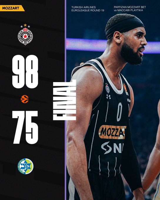 Πάρτι με... καλεσμένη την Μακάμπι Τελ Αβίβ έστησε η Παρτιζάν, κερδίζοντας άνετα με 98-75, έχοντας 31 ασίστ και 15 κλεψίματα.