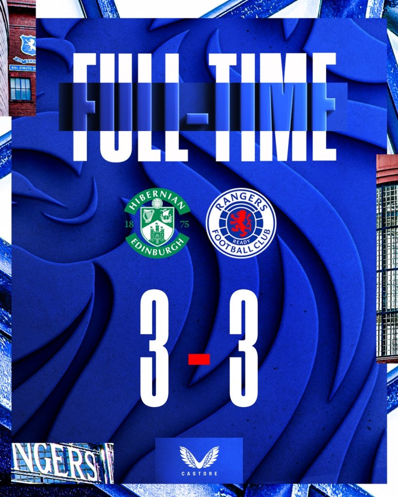 Άλλη μια απώλεια βαθμών, μακριά από το "Άιμπροξ, κατέγραψε η Ρέιντζερς, παρά το χατ τρικ του Ιγκαμάν. Στην έδρα της Χιμπέρνιαν, προηγήθηκε 2-0, αλλά, οι γηπεδούχοι αντέδρασαν και, με το τελικό 3-3, η Ρέιντζερς απομακρύνεται και άλλο από την πρωτοπόρο Σέλτικ, λίγες ημέρες μετά τον θρίαμβό της στο Old Firm.