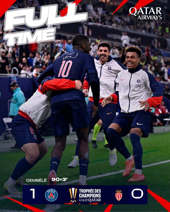 Η Παρί ήταν η θριαμβεύτρια στον τελικό του Σούπερ Καπ απέναντι στη Μονακό με νίκη 1-0 χάρη σε γκολ του Ντεμπελέ στο δεύτερο λεπτό των καθυστερήσεων.