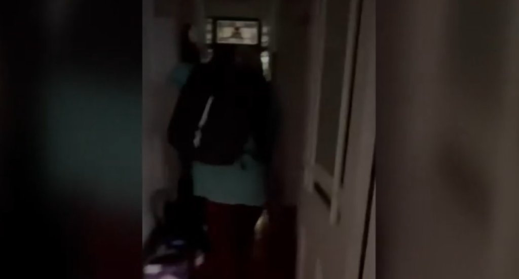 Στο βίντεο που ανήρτησε η ίδια στα social media, φαίνεται ένας άνδρας με σκούφο στο κεφάλι και σακίδιο στην πλάτη, να το βάζει στα πόδια στη θέα του θύματός του.