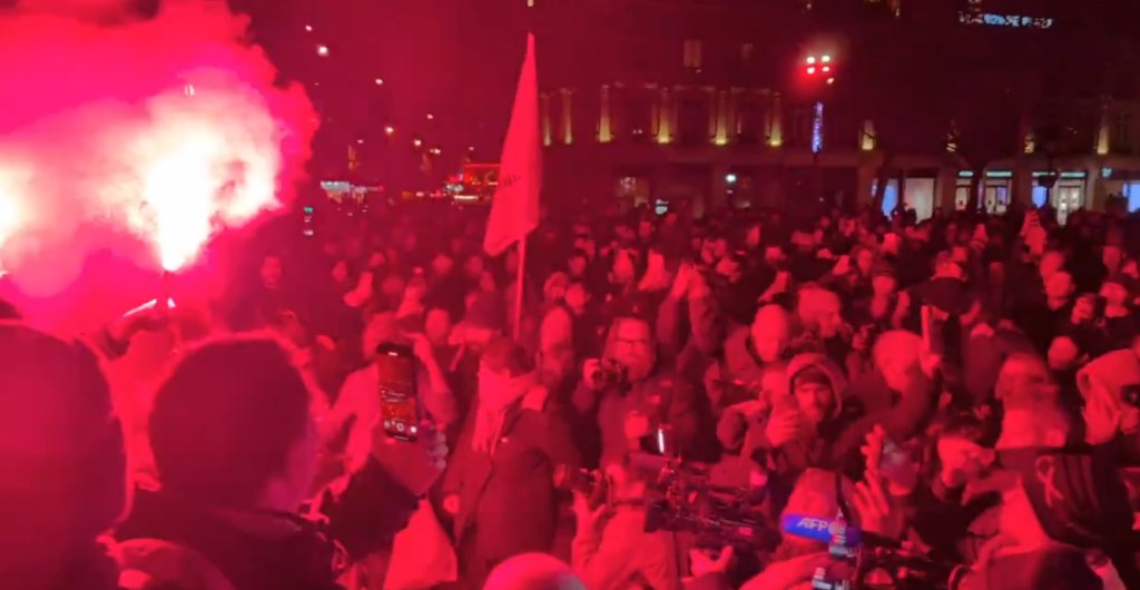L’ambiance monte et la foule se rassemble place de la République pour fêter la mort de Jean-Marie Le Pen.