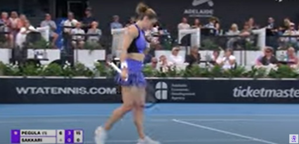 Από εκεί και πέρα ακολούθησαν ακόμα 3 κερδισμένα game από την Αμερικανίδα, με τη Σάκκαρη να βγάζει προβλήματα από τη θέση του service, ειδικά στο δεύτερο, γεγονός που την έφερε πίσω με 5-2 και την Πεγκούλα να σερβίρει για την κατάκτηση του 1ου σετ. Αυτό δεν έγινε με την πρώτη προσπάθεια, καθώς η Σάκκαρη με break και hold μείωσε σε 5-4, όμως στη δεύτερη φορά που η Πεγκούλα σέρβιρε για το σετ το έκανε δικό της και με 6-4 σε 39 λεπτά πήρε προβάδισμα με 1-0.