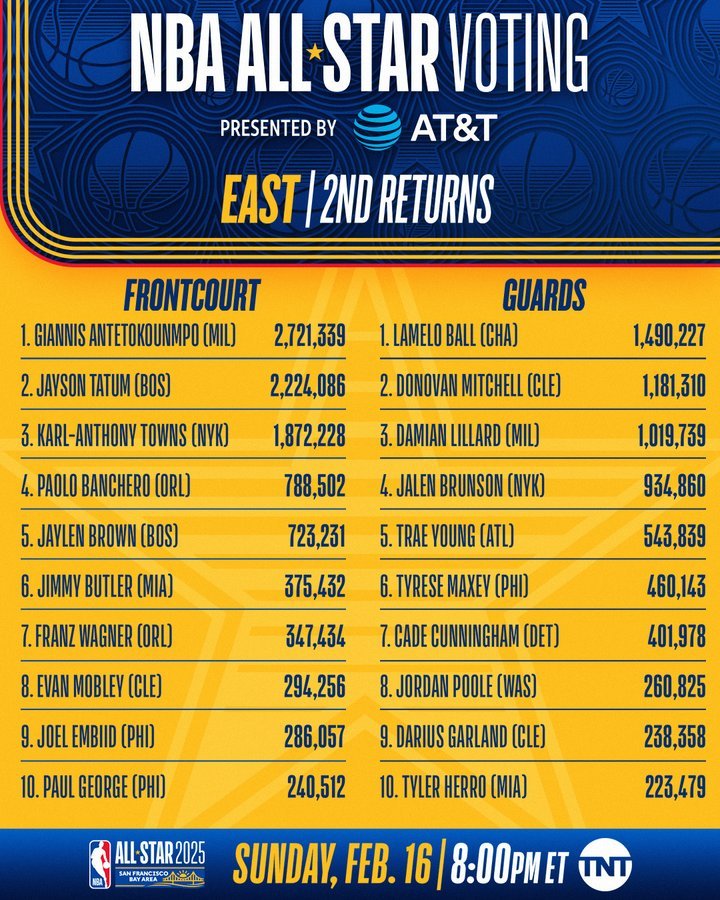 Ο Έλληνας σταρ των Μιλγουόκι Μπακς συνεχίζει να βρίσκεται στην κορυφή με τις περισσότερες ψήφους, όχι μόνο στην Ανατολική Περιφέρεια αλλά και σε ολόκληρη τη λίγκα, έχοντας συγκεντρώσει μέχρι στιγμής 2.721.339 ψήφους που φυσικά αυξάνονται.