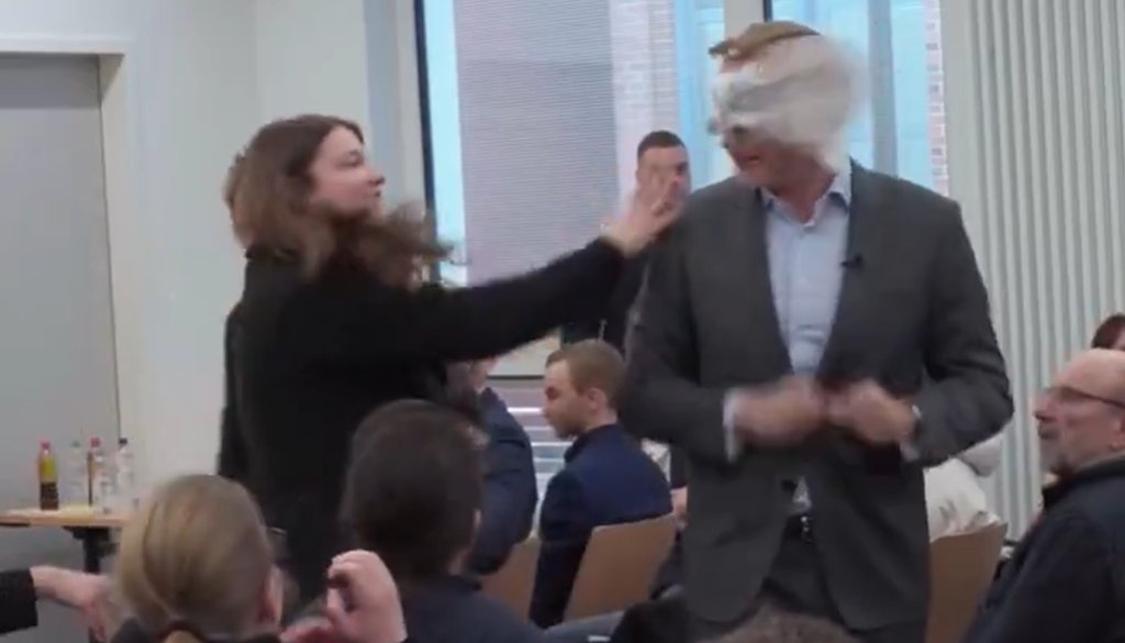 Ο πρώην υπουργός Οικονομικών της Γερμανίας, βρισκόταν στο βήμα όταν ξαφνικά εμφανίστηκε μια νεαρή γυναίκα μπροστά του. Αφού του είπε «Αξιότιμε κύριε Λίντνερ» του πέταξε μια τούρτα στο πρόσωπο.