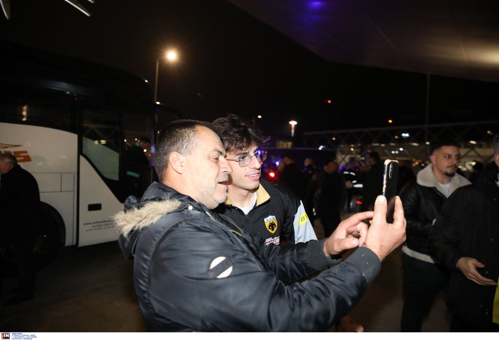 Με την πρόκριση στις βαλίτσες της η ΑΕΚ πήρε τον δρόμο της επιστροφής για την Αθήνα. Στο αεροδρόμιο της Θεσσαλονίκης την ομάδα υποδέχθηκαν φίλοι της ομάδας. Μοίρασαν συγχαρητήρια για την πρόκριση επί του ΠΑΟΚ κι έβγαλαν φωτογραφίες με τους παίκτες. Φυσικά το κλίμα ήταν ενθουσιώδες.