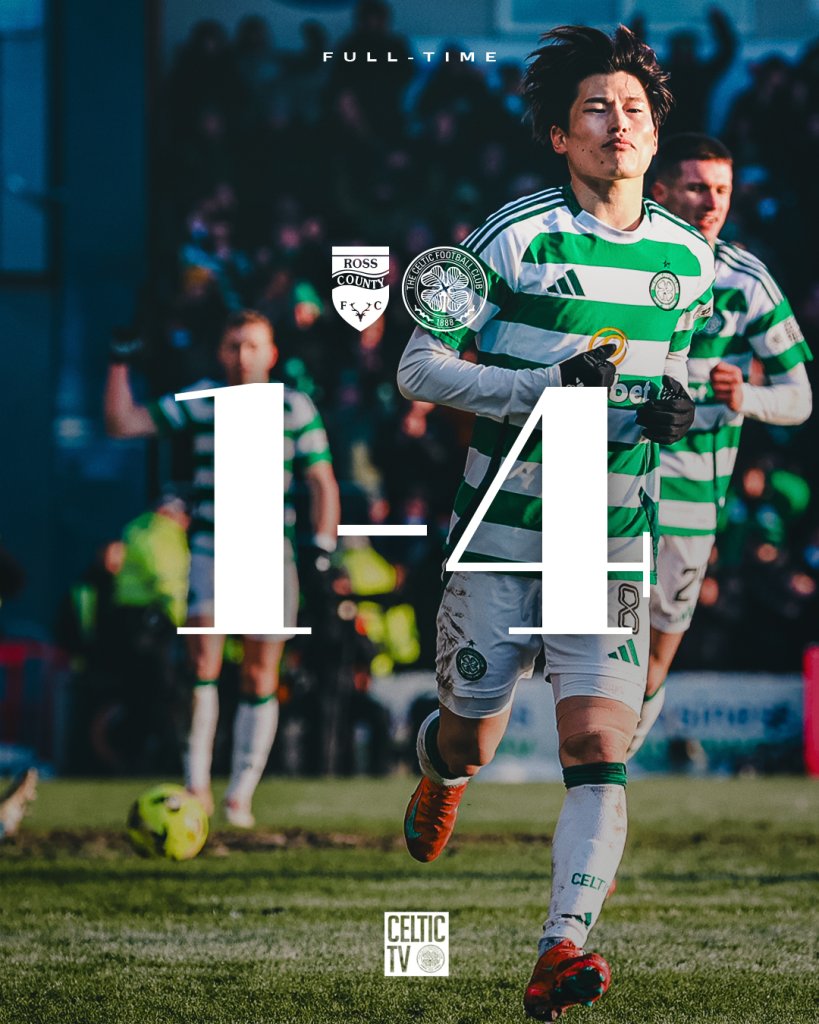 Με τη συμπλήρωση 40 λεπτών παιχνιδιού, ο Κιόγκο Φουρουχάσι άνοιξε το σκορ, με τη Ρος Κάουντι να ισοφαρίζει, στο 60', με εύστοχη εκτέλεση πέναλτι του Γουάιτ. Οι γηπεδούχοι ζόρισαν τους φιλοξενούμενους, οι οποίοι, αφού προηγήθηκαν 1-2 με τον Φουρουχάσι, στο 81', βρήκαν άλλα δυο γκολ μετά το 90'. Στο έκτο λεπτό των καθυστερήσεων, ο Άρνε Ένχελς έκανε το 1-3, ευστοχώντας σε εκτέλεση πέναλτι, και, στο 90'+8', ο Λουκ ΜακΚάουαν διαμόρφωσε το τελικό 1-4. Με +18 από τη Ρέιντζερς, παρότι έχει ματς περισσότερο, η Σέλτικ αναμένει την οριστικοποίηση της κατάκτησης τέταρτου σερί πρωταθλήματος.