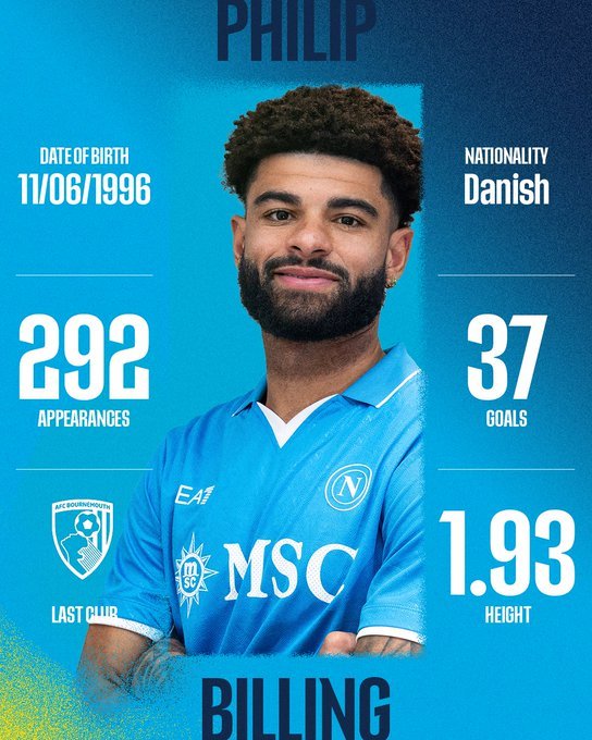 Η πρωτοπόρος της Serie A Νάπολι ανακοίνωσε επίσημα τον δανεισμό του Φίλιπ Μπίλινγκ από την Μπόρνμουθ, με τον Αντόνιο Κόντε να προσθέτει ακόμη έναν παίκτη στη μεσαία γραμμή των Παρτενοπέι.