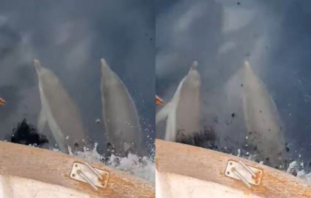 Στο βίντεο που κατέγραψαν φαίνονται τα θηλαστικά να συνοδεύουν τη βάρκα στη Νέα Σκιώνη.