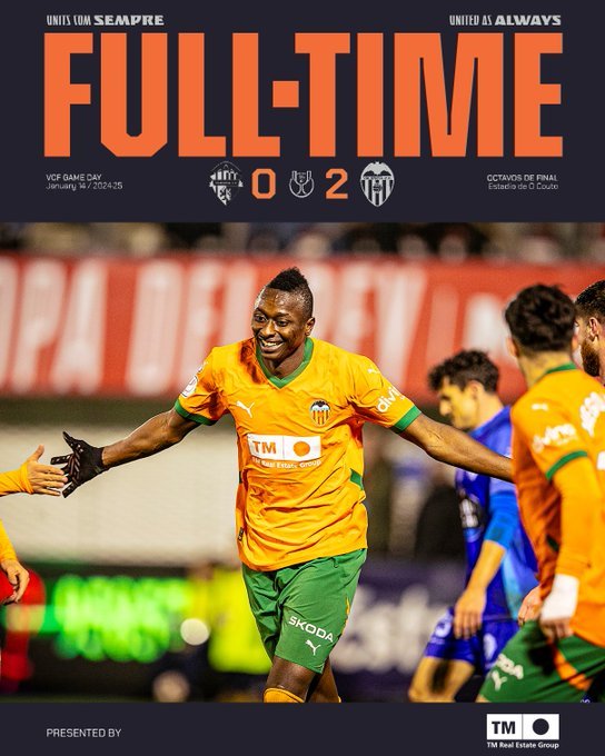 Στην επόμενη φάση του ισπανικού Κυπέλλου η Βαλένθια, η οποία κέρδισε με 2-0 στην έδρα της Ουρένσε. Το 1-0 ήρθε στο 50ο λεπτό από αυτογκόλ του Καρμόνα και στο 78’ ο Σαντίκ έκανε το 0-2.