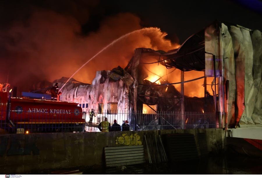 Η φωτιά κατέστρεψε ένα από τα κτίρια του εργοστασίου και συγκεκριμένα ένα διώροφο κτίριο μεταλλικής κατασκευής επί της οδού Ηφαίστου στο Κορωπί που ανήκει στην εταιρεία «Καραμολέγκος».