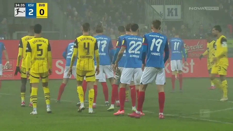 Στο Κίελο, η Μπορούσια Ντόρτμουντ τα έκανε μούσκεμα, χάνοντας 4-2 από τη νεοφώτιστη Χόλσταϊν Κίελ. Στο 27ο λεπτό, οι γηπεδούχοι άνοιξαν το σκορ με τον Ματσίνο και, πέντε λεπτά αργότερα, διπλασίασαν τα τέρματά τους, με σκόρερ τον Χαρές. Στις καθυστερήσεις του ημιχρόνου, η Χόλσταϊν Κίελ βρήκε και τρίτο γκολ, με τον Μπέρνχαρντσον. Στο δεύτερο ημίχρονο και σε διάστημα έξι λεπτών, η Ντόρτμουντ βρήκε δυο γκολ, με Ρέινα (71') και Γκίτενς (77'), ξαναμπαίνοντας στο παιχνίδι. Από το 86', έπαιζε και με παίκτη παραπάνω, λόγω αποβολής του Χόλτμπι της Χόλσταϊν Κίελ, αλλά, στη τελευταία φάση του ματς, οι γηπεδούχοι διαμόρφωσαν το τελικό 4-2 με τον Αρπ. Στην 8η θέση έπεσε η Ντόρτμουντ.
