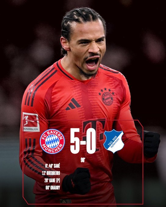 Εύκολο βράδυ για την Μπάγερν Μονάχου η οποία κέρδισε την αδύναμη Χοφενχάιμ με 5-0 και διατηρήθηκε στην κορυφή.