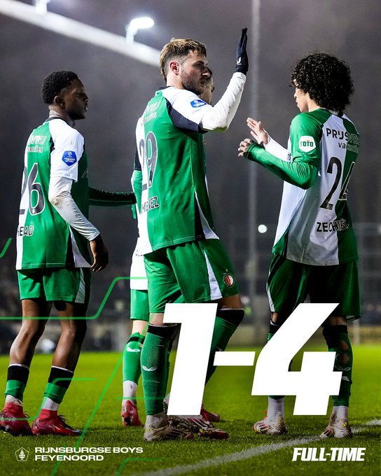 Άνετα στα προημιτελικά του Κυπέλλου η Φέγενορντ, η οποία πέρασε με 4-1 από την έδρα της Ράινσμπεργκς Μπόις.