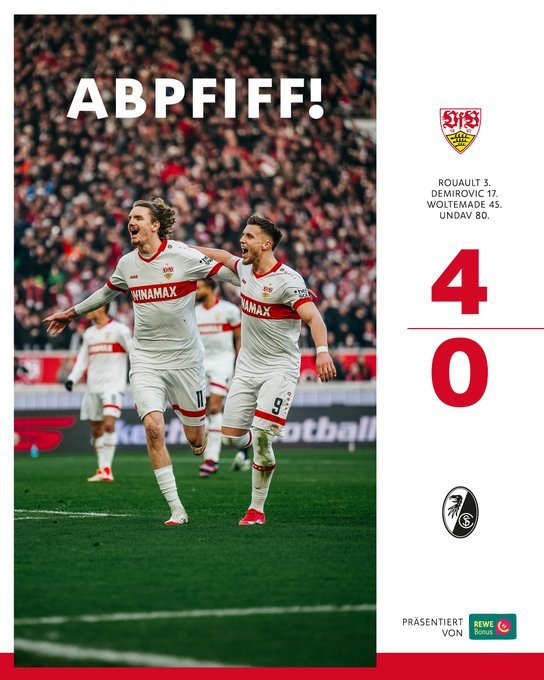 Τρίτη σερί νίκη το 2025 για την Στουτγκάρδη, καθώς καθάρισε με 4-0 την Φράιμπουργκ και πάτησε στην πρώτη τετράδα.