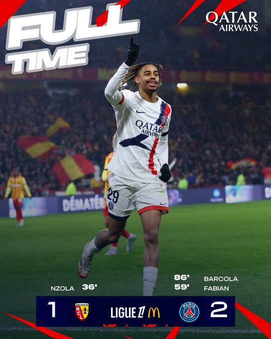 Η Λανς άνοιξε το σκορ στο 37ο λεπτό με τον Ενζολά αλλά στο 2ο μέρος η Παρί μπήκε δυνατά και ισοφάρισε στο 59’ με τον Φαμπιάν Ρουίθ. Και στο 86ο λεπτό ο Μπαρκολά με τρομερό σουτ από πλάγια αριστερά έκανε το 1-2.