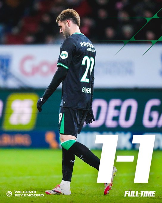 Συνεχίζει τα αρνητικά αποτελέσματα η Φέγενορντ καθώς η ομάδα του Μπράιαν Πρίσκε μία βδομάδα μετά την ήττα από την Ουτρέχτη, έμεινε στο 1-1 την έδρα της Βίλεμ.