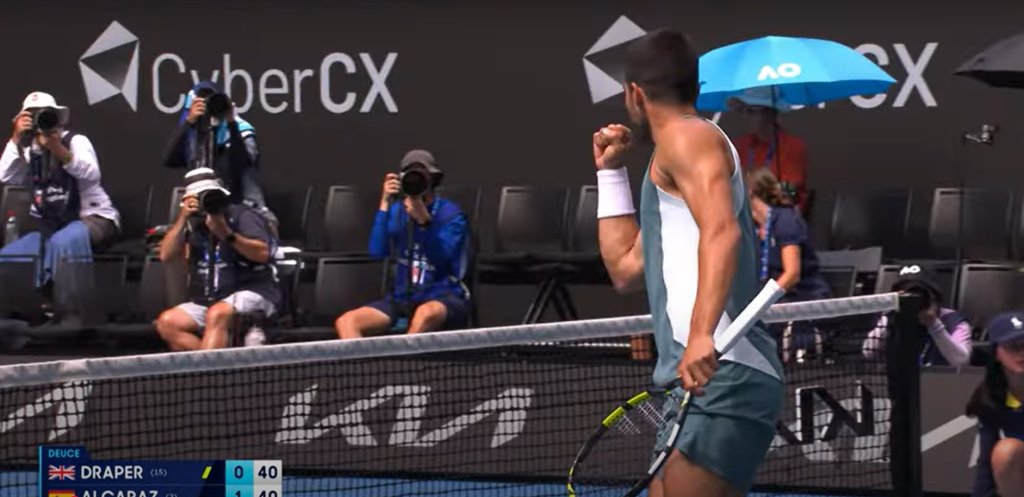 Στο τέλος του δεύτερου σετ, ο Τζακ Ντρέιπερ αποσύρθηκε και ο Κάρλος Αλκαράθ πήρε την πρόκριση για τους "8" του Australian Open. Εκεί, θα αντιμετωπίσει, εκτός συγκλονιστικού απροόπτου, τον Νόβακ Τζόκοβιτς, που αντιμετωπίζει τον Γίρι Λεχέτσκα.