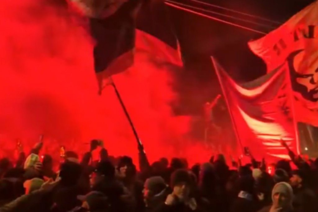 Με συνθήματα, τραγούδια, και καπνογόνα, οι οπαδοί εξέφρασαν τη λατρεία τους για τους ποδοσφαιριστές και τον προπονητή της Νάπολι.