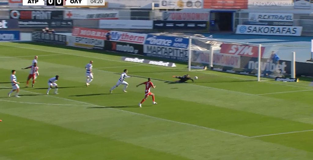 Στο 6ο λεπτό, ο Ροντινέι έπιασε ένα δυνατό σουτ έξω από την περιοχή με τον τερματοφύλακα του Ατρομήτου, τον Χουτεσιώτη, να αποκρούει.
