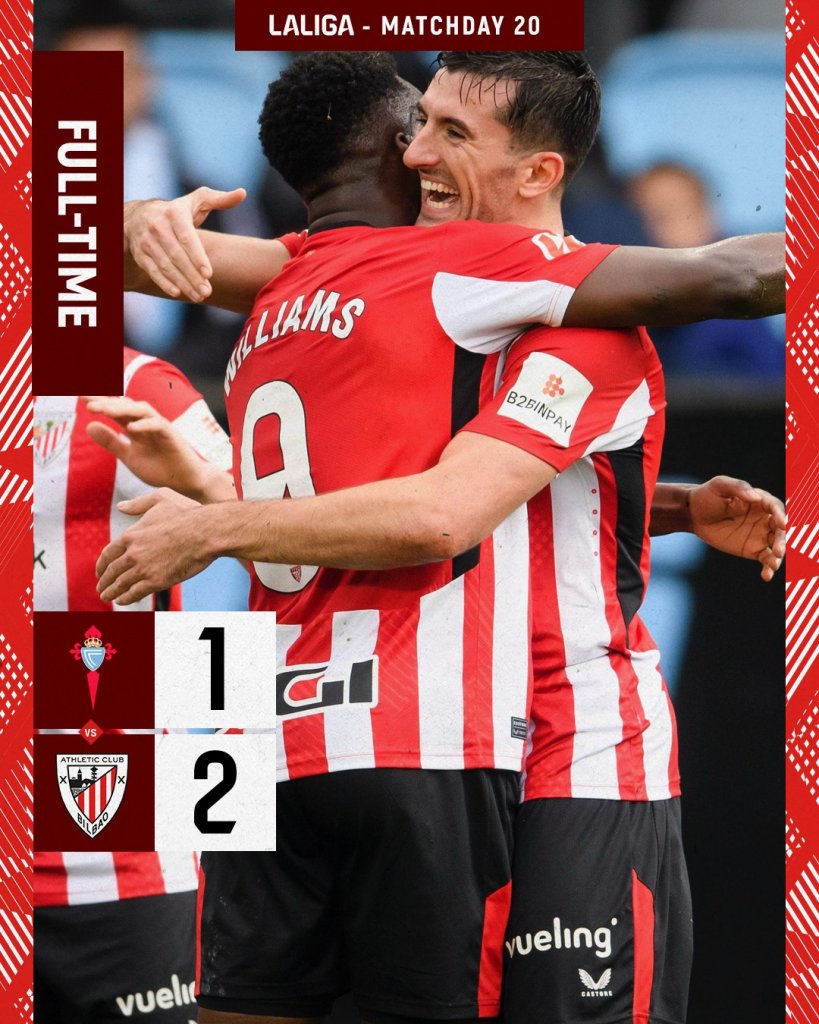 Οι υψηλές πτήσεις της Αθλέτικ Μπιλμπάο, στην εφετινή La Liga, συνεχίζονται με την ομάδα του Ερνέστο Βαλβέρδε να πιάνει την Μπαρτσελόνα στη τρίτη θέση, μετρώντας αήττητο 11 αγωνιστικών. Στα πλαίσια της 20ης αγωνιστικής, η Αθλέτικ Μπιλμπάο πήγε στο "Μπαλαΐδος" και νίκησε 2-1 την Θέλτα, παίρνοντας τα πάνω της, αφού είχαν προηγηθεί ο αποκλεισμός στο Copa del Rey και η ήττα στον ημιτελικό του ισπανικού Σούπερ Καπ.