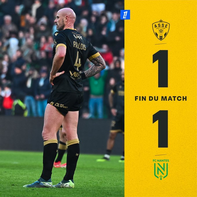 Η Ναντ άνοιξε το σκορ με γκολ του Σιμόνς στο 14ο λεπτό και η Σεντ Ετιέν ισοφάρισε στο 86’ με τον Μποάκι.