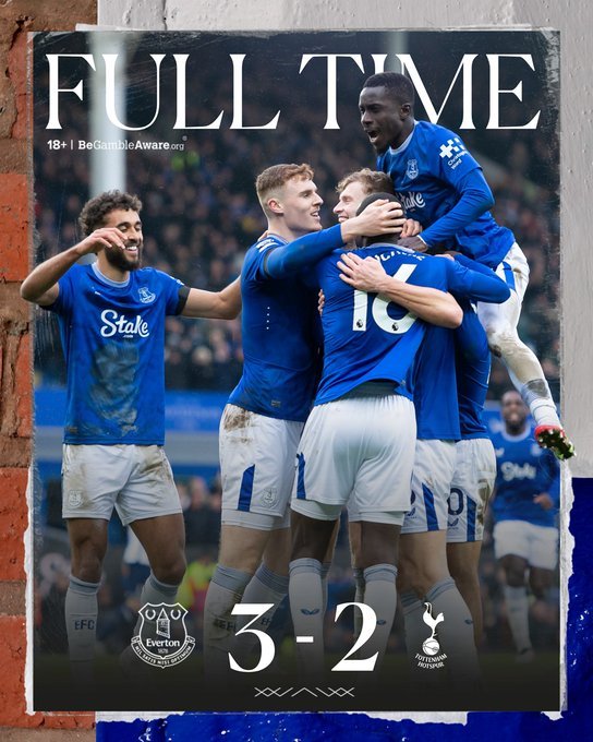 Τεράστια βαθμολογική ανάσα για την Έβερτον, η οποία κέρδισε με 3-2 την Τότεναμ πήρε το πρώτο της τρίποντο μέσα στο 2025 και βρέθηκε στο +4 από την επικίνδυνη ζώνη. Χωρίς νίκη από τις 15 Δεκεμβρίου η Τότεναμ που αν συνεχίσει έτσι θα κινδυνεύσει.