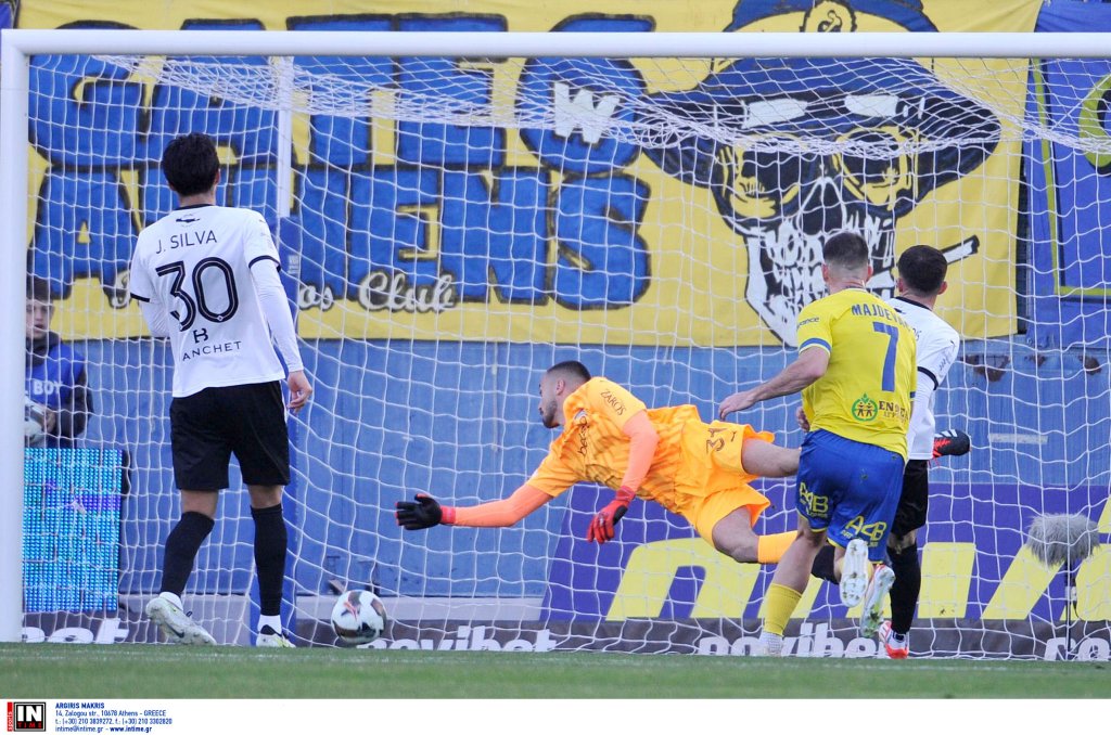 Η πρώτη σημαντική φάση σημειώθηκε στο 21’ όταν ο Μπουζούκης έκανε το σουτ και ο Χριστογεώργος έδιωξε Πέντε λεπτά μετά ο Μπακάκης έκανε τη σέντρα και ο Μαϊντέβατς με εντυπωσιακή κεφαλιά έκανε το 1-0. Ο Φούντας έκανε βολέ στην κίνηση στο 33’ αλλά δεν βρήκε στόχο.