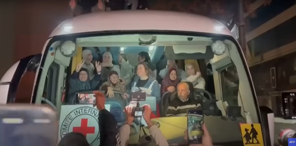 Τα ξημερώματα της πρώτης ημέρας (20.01.2025) της εφαρμογής της συμφωνίας για την κατάπαυση του πυρός στη Λωρίδα της Γάζας, 2 λεωφορεία με φιμέ τζάμια αναχώρησαν από την φυλακή Όφερ του Ισραήλ για την κατεχόμενη Δυτική Όχθη.