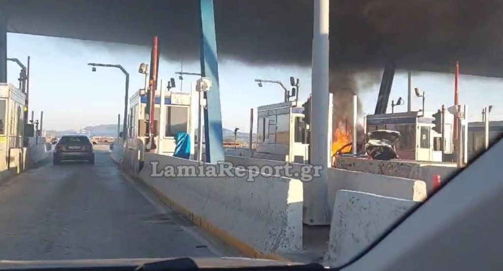 Τη στιγμή που αυτοκίνητο έχει πιάσει φωτιά την ώρα που ο οδηγός του ετοιμαζόταν να πληρώσει στα διόδια Θηβών κατέγραψε βίντεο από διερχόμενο όχημα που φέρνει στη δημοσιότητα το LamiaReport.