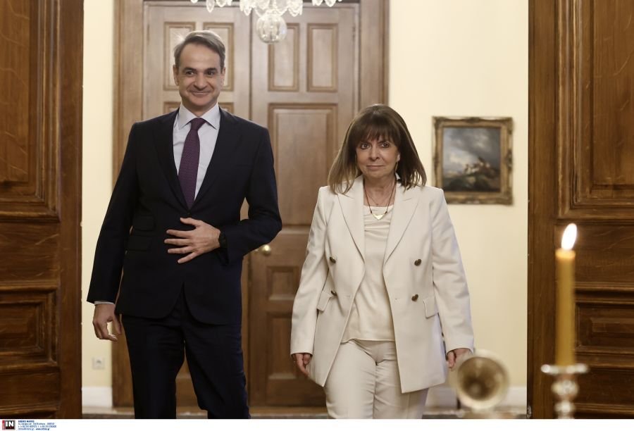 Ο Κυριάκος Μητσοτάκης συνάντησε σήμερα, Δευτέρα την Κατερίνα Σακελλλαροπούλου, αφότου το τετ-α-τετ τους αναβλήθηκε την περασμένη Τετάρτη, όταν και ο πρωθυπουργός ανακοίνωσε με μήνυμά του στους πολίτες πως η ΝΔ προτείνει τον πρόεδρο της Βουλής Κωνσταντίνο Τασούλα για τη θέση του Προέδρου της Δημοκρατίας.